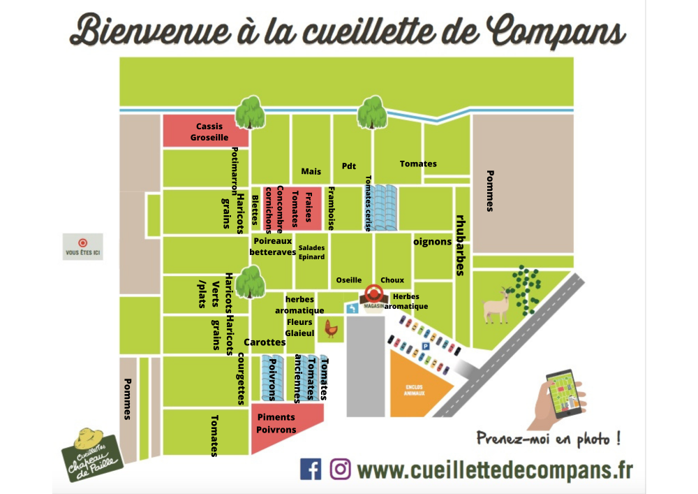 Les contenus des parcelles à cueillir sont sur le plan, et ceux des tunnels dans le tableau ci-dessous. Bonne cueillette !